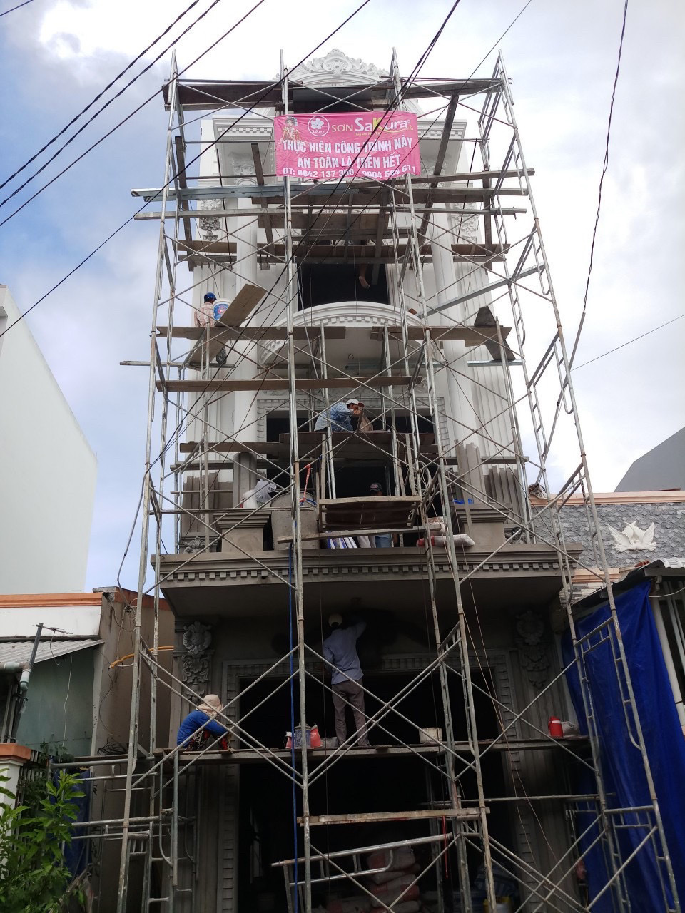 Công trình nhà 3 tầng được thiết kế theo phong cách Phương Tây nổi bật với các đường nét kiến trúc tinh tế, yêu cầu cao về tính thẩm mỹ và độ hoàn thiện bề mặt. Để đáp ứng tiêu chí này, thương hiệu sơn Sakara được lựa chọn nhằm mang lại vẻ ngoài sang trọng, đồng thời đảm bảo độ bền trong điều kiện khí hậu nóng ẩm.